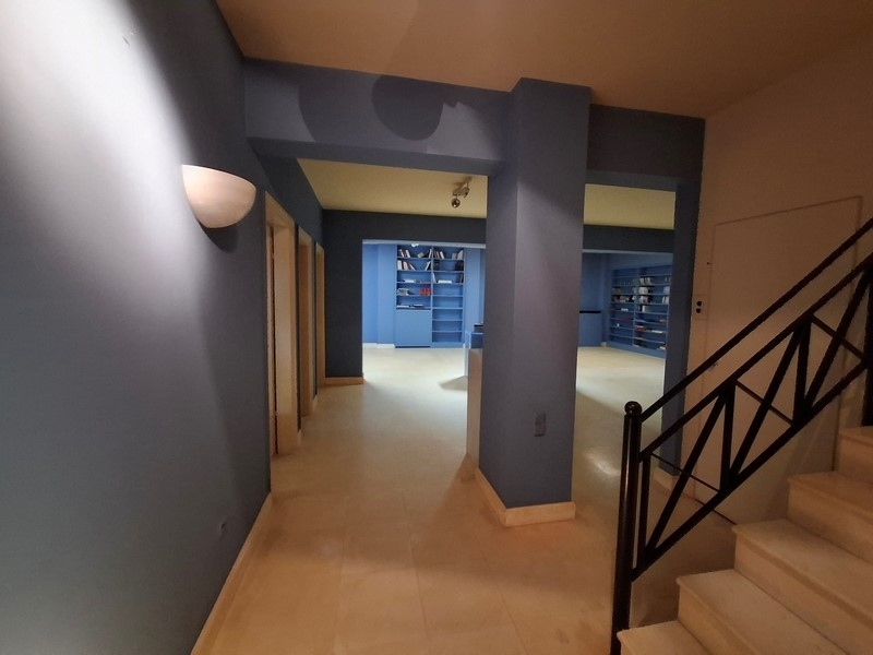 Η κατοικία αναπτύσσεται σε ισόγειο, υπόγεια και Α’ όροφο και περιλαμβάνει ευρύχωρα σαλόνια, τραπεζαρία, κουζίνα, γραφεία, υπνοδωμάτια και εσωτερική πισίνα. Οι χώροι χαρακτηρίζονται από έντονο κλασικό στοιχείο, με μάρμαρο σε όλους τους βασικούς χώρους, δημιουργώντας αίσθηση πολυτέλειας και διαχρονικότητας.